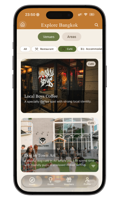 Instead of endlessly searching across Google Maps, blogs, and social media, Veloura brings together a carefully selected collection of places and guides, recommended by trusted local ambassadors.