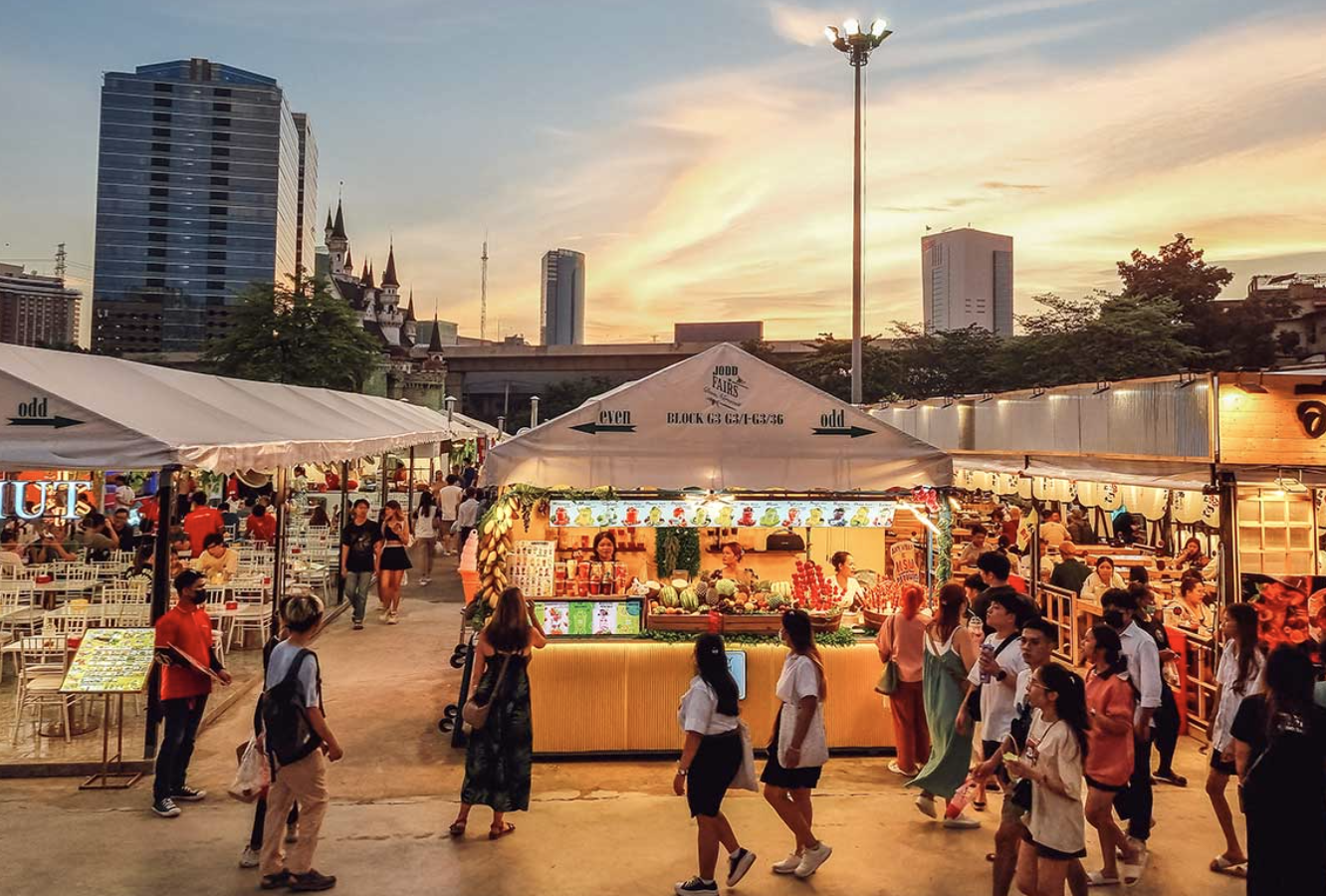 Jodd Fairs is one of Bangkok’s most popular night markets, known for its lively atmosphere and strong street food scene. As the sun sets, the market lights up with neon signs, sizzling grills and a steady flow of locals and visitors.